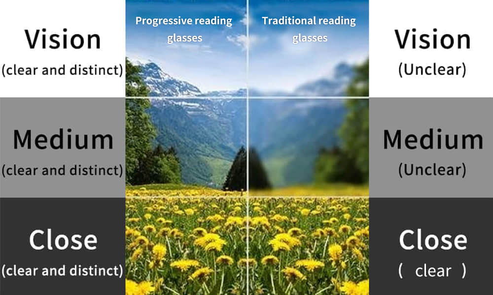 Furthermore, let's compare progressive reading glasses and traditional reading glasses: